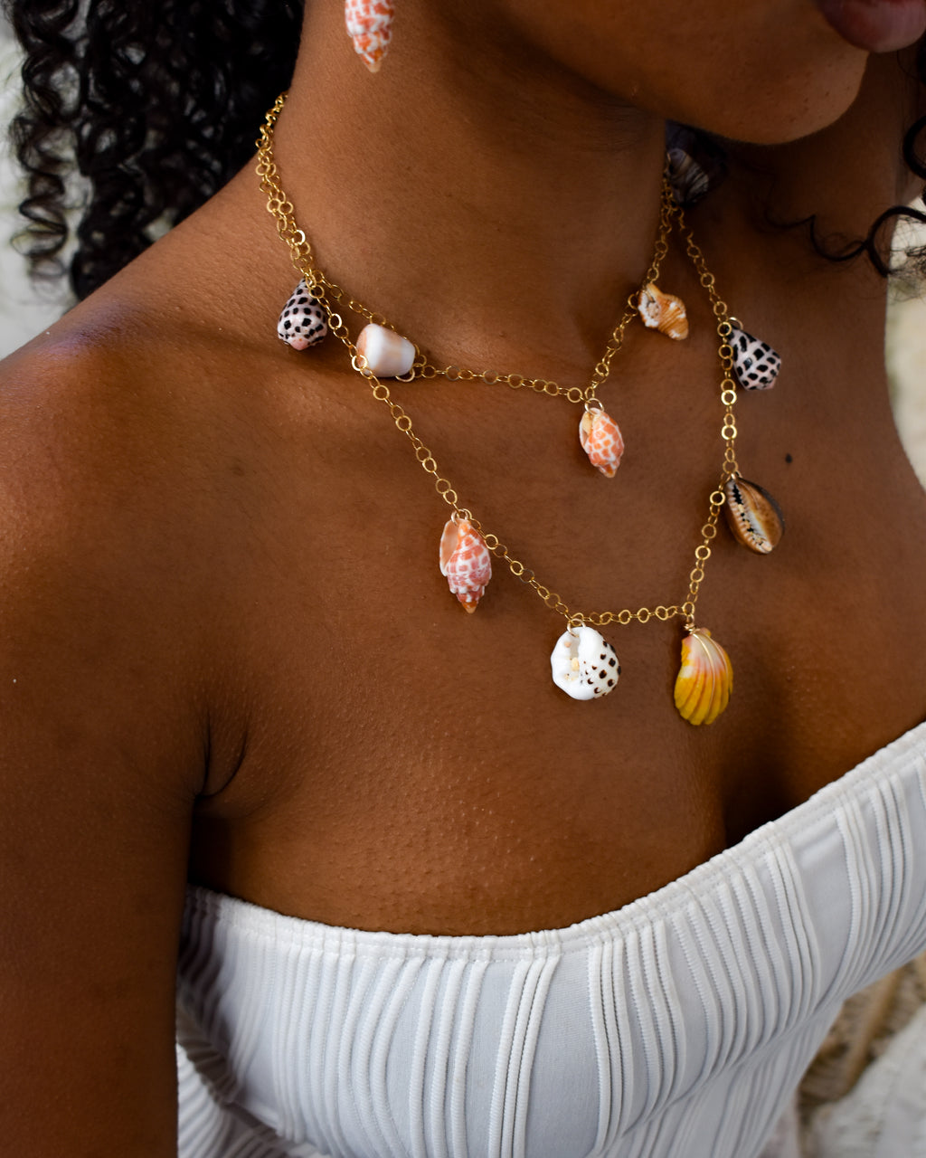 Embrace the uniqueness of Beachy Charm Necklace! Each one-of-a-kind piece features hand-picked shells from Hawai'i, giving off playful mermaid vibes. The 18" 14k gold fill chain adds a touch of elegance to any outfit. (Dive in and make a splash with this whimsical accessory!)